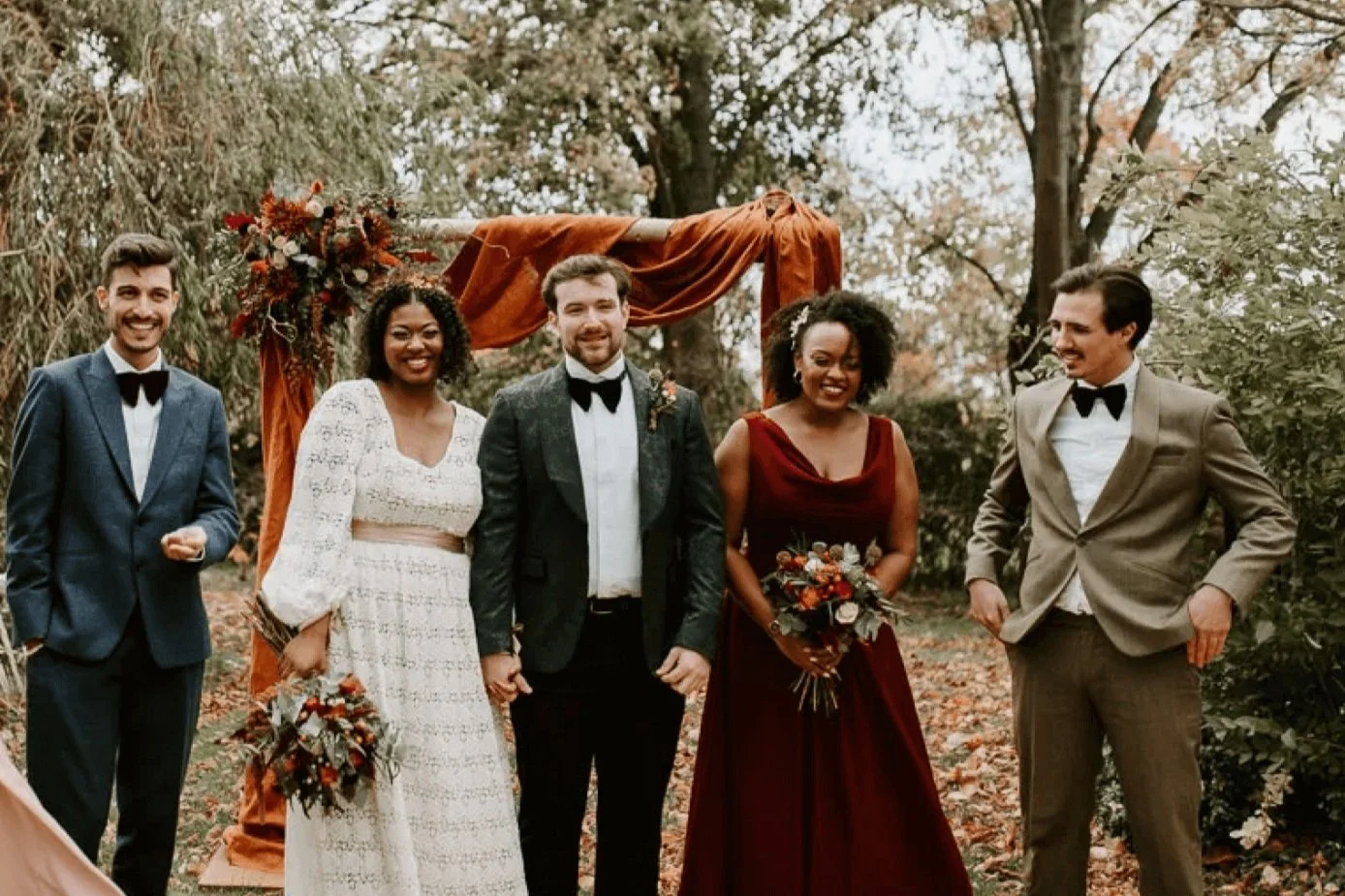 Sophisticated, classic cuts. Although we are getting married outside we encourage the men to wear suits and women to wear longer dresses.